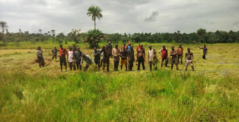 Second day Mr Koroma and Field Officer Haja visited our wetland nerica rice to see the nursed seedlings being planted