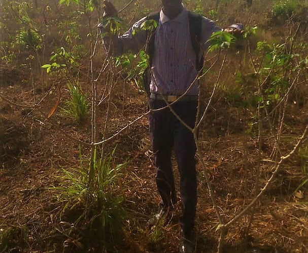 A scenic sojourn upline with Madam Baromy, Manays Chairlady and Sheku visiting Hope Sakuma's cassava and cashew nut farm the project boosting nutrition and climate change adaptation in Sanda Magbolontor chiefdom, Karene district.