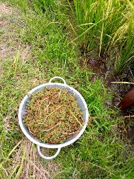 Now Azolla's keeping our vegetable seedlings' roots cool and moist and supressing weeds and retaining moisture as dry season comes. When Vidal's ducks arrive from Freetown, we'll have no need to source poultry manure and the ducks will be able to feast on Azolla increasing both weight and laying.